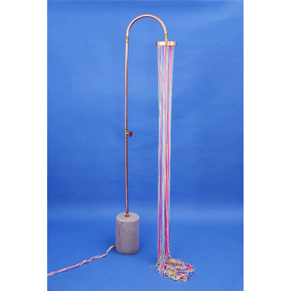 Wie zei dat je in de badkamer moet douchen? Beton en koper gecombineerd om ons heerlijk te verfrissen, zelfs in de tuin. De koperen buitendouche is een regendouche met een minimalistisch design.